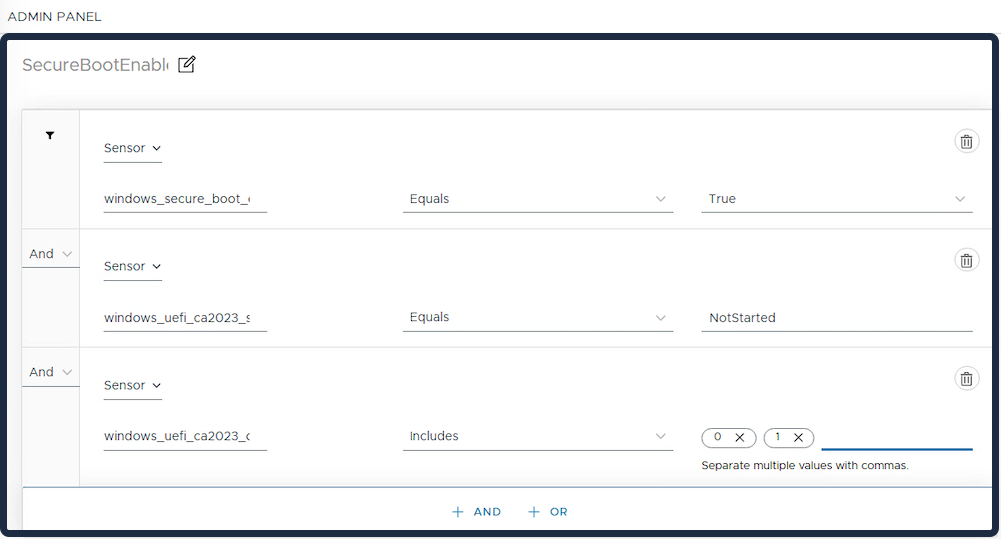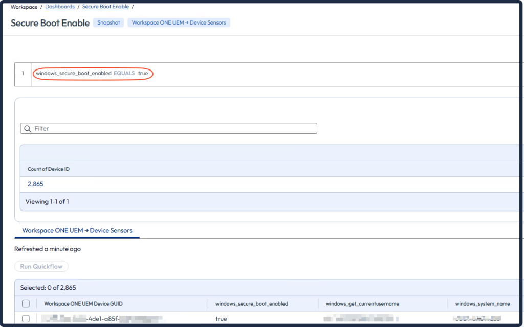 Now that you’ve created all the Sensors, you can move on to Omnissa Intelligence to use reports and dashboards to gather all the information about Windows devices related to Secure Boot.