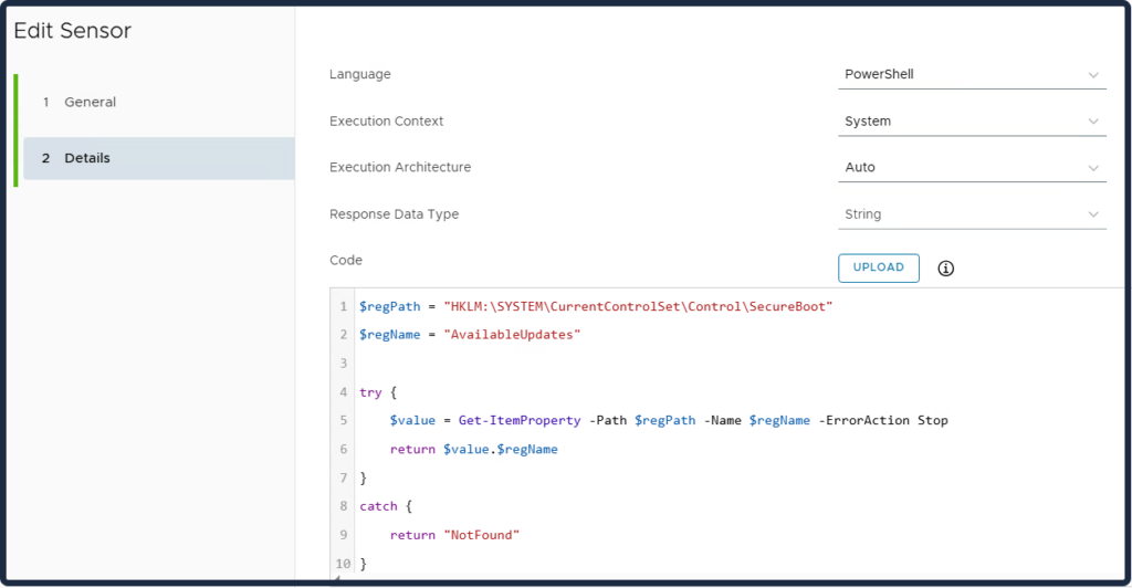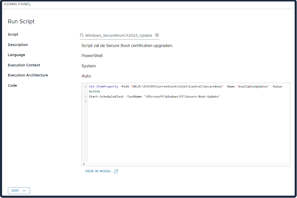 Create a dashboard to see the Available Updates. Controls which Secure Boot update actions to perform on the device.